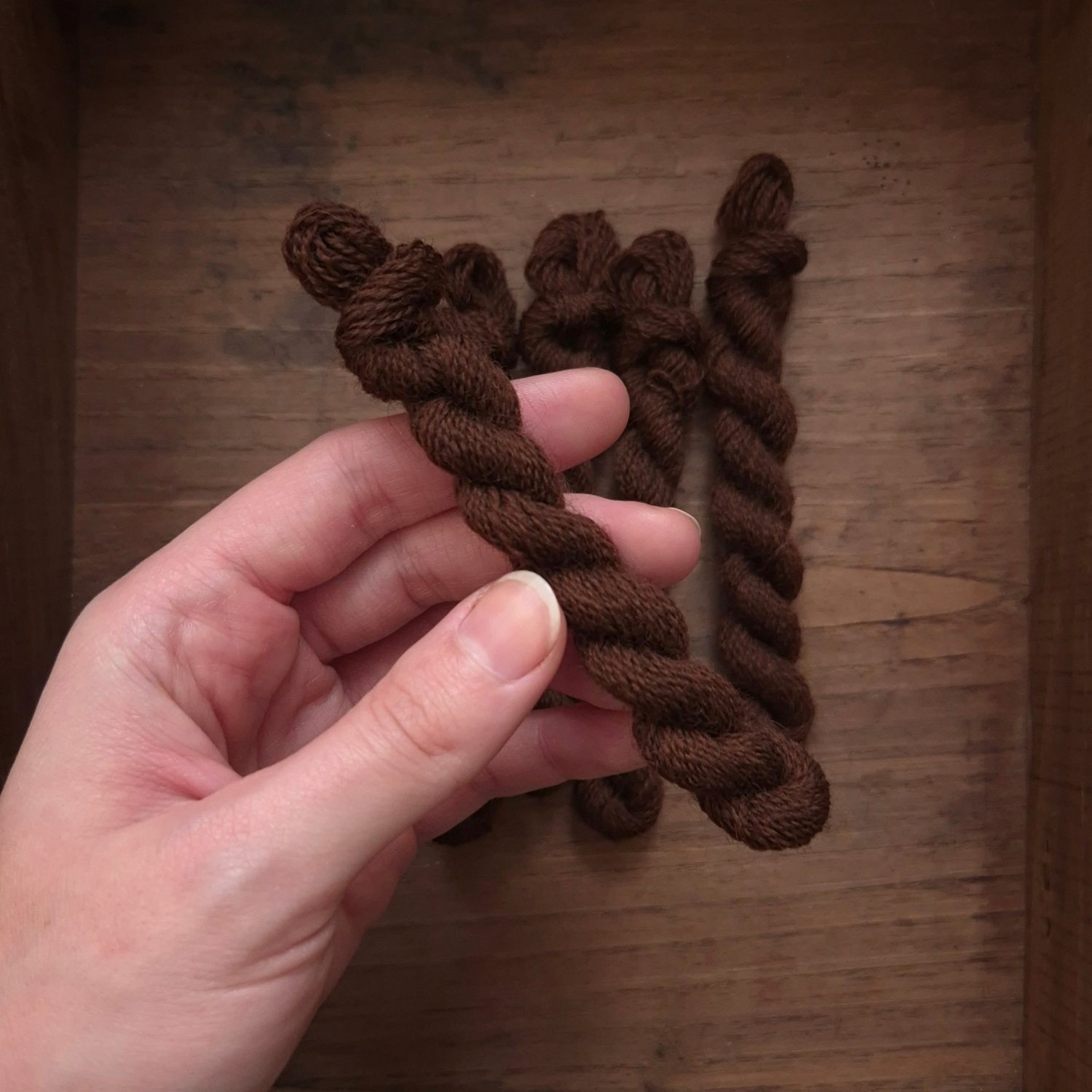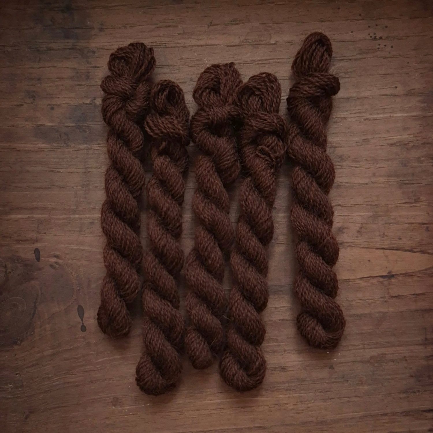 Accueil » Boutique » Teintures naturelles » Échevettes à broder » Échevette de laine fine à broder | Marron chocolat – Teinture saisonnière limitée 🍁☀️🍃❄️